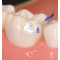 매트릭스의 폐쇄 모서리와 언어에서 유동성 복합체를 분사하여 스폿 용접을 만듭니다. 바깥쪽, 상단 및 매트릭스 모서리 안쪽을 덮을 수 있을 만큼 충분히 흐릅니다. 준비 장치에 푸시-풀 기기를 삽입하고(중간인 경우) 매트릭스를 옆 톱니에 대고 당깁니다(원위인 경우). 푸시-풀 기기로 매트릭스를 제자리에 고정시킨 상태에서 폐색에서 흘러나오는 유량의 스폿 용접을 각각 5초만 경화하십시오. 푸시-풀을 제거한 후 10초 동안 예열하여 접착제를 경화시킵니다.